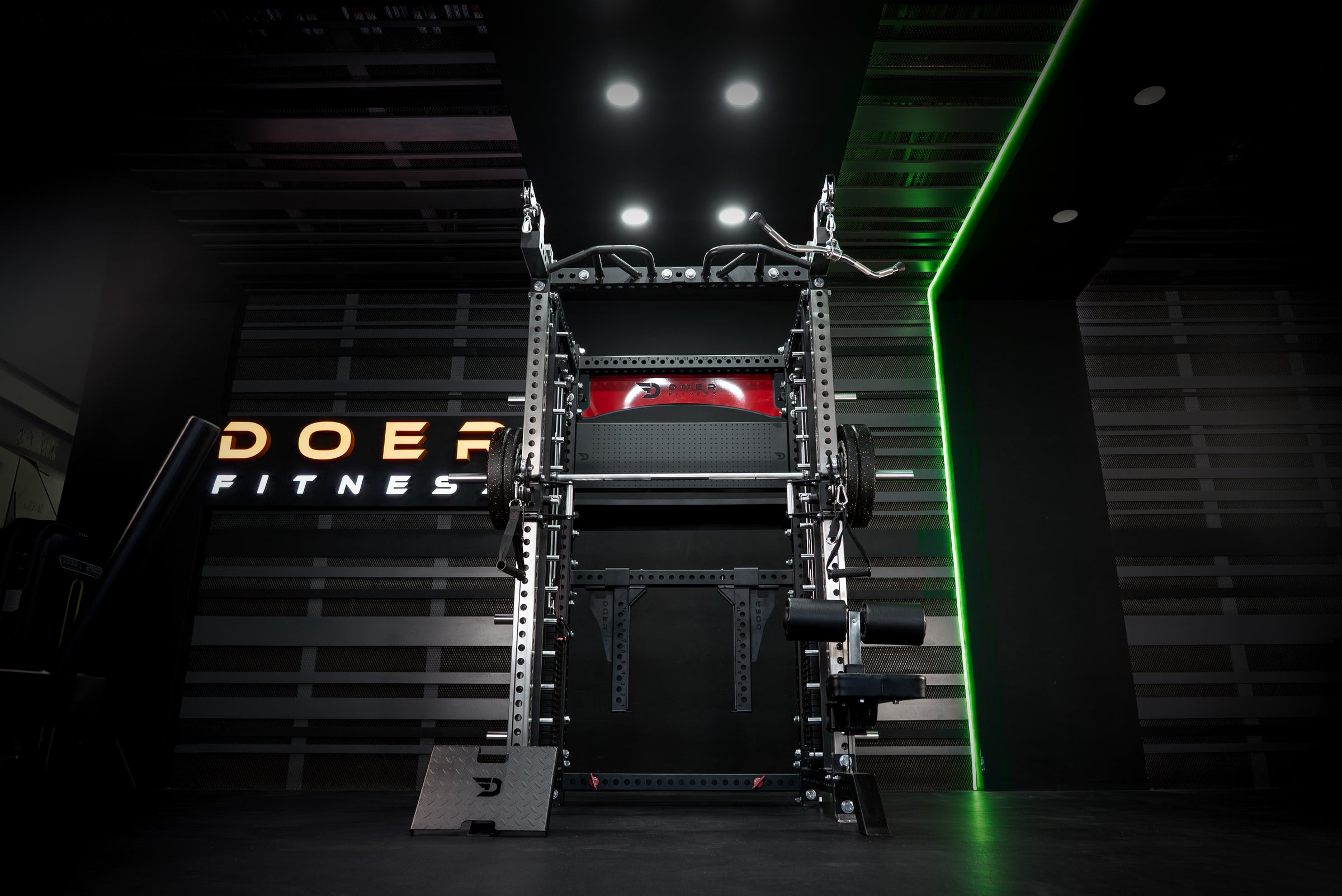 Doer Fitness Black Series Smith Machine – Guided barbell strength system with matte black commercial-grade frame and integrated plate storage